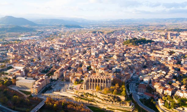 Aerial view of Manresa – town near Pyrenees mountains in Catalonia